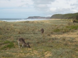 Kangaroos enjoying the beach